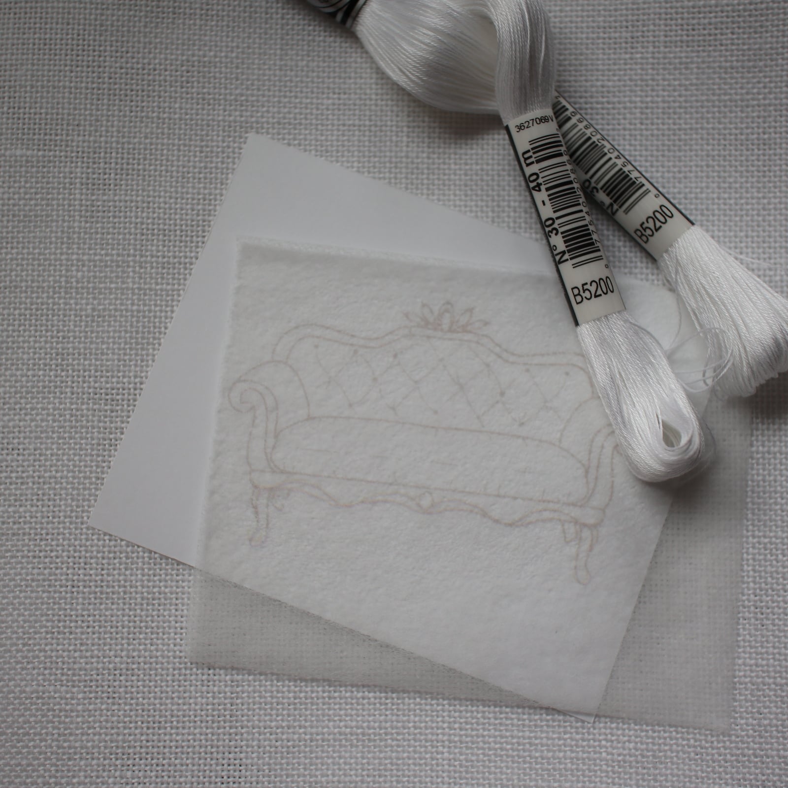 図案写しシート、チャコペンと白糸刺繍用ファブリック&糸セット